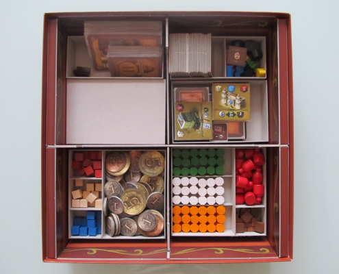 Trochę tego jest, próg wejścia dość wysoki. Jednak jak potraktujemy to jako kolejny sposób obcowania z planszówkami to myślę, że warto. Jak widać na zamieszczonych zdjęciach wszystkie te pojemniki są zrobione najprościej jak to tylko możliwe. Elementy składowe to jedynie prostokąty, żadnych wymysłów, naprawdę nie jest to trudna sztuka. Wystarczy trochę czasu, cierpliwości i parę złotych rad. Pierwsze dwie kwestie zależą w pełni od Was, ale jeśli chodzi o zwrócenie uwagi na niuanse, postaram się to zrobić maksymalnie dokładnie. W następnym wpisie wyjaśnię wszystko krok po kroku, począwszy od wstępnego rozplanowania do efektu finalnego. Będzie dużo zdjęć i uwag, więc nie obawiajcie się, że rozegram to jak w pewnym tutorialu o rysowaniu koni.