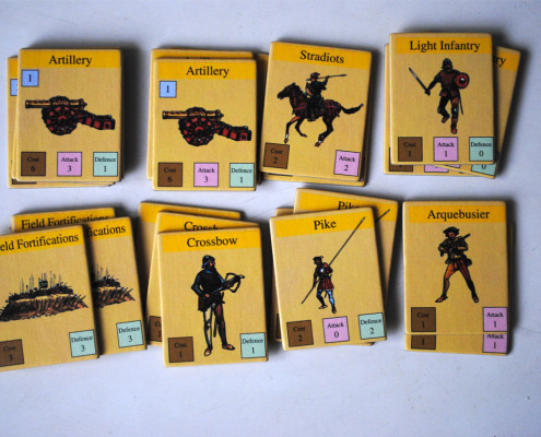 Skoro chcemy obniżyć prestiż miast, w których nasi rywale posiadają najwięcej wpływów, wypadałoby zarekrutować wojsko. Jest osiem typów jednostek, dostępnych w różnej ilości (od 2 do 4). Każda z nich posiada wartości siły ataku i obrony oraz cenę. Najdroższe jednostki posiadają również mały bonus – produkują wpływy. Żołnierzy kupujemy od razu, bez licytacji, nigdy nie giną. Wydawałoby się, że pod znakiem zakupu wojska upłynie pierwszych parę rund pierwszej dekady – żal ich nie mieć, a warto się śpieszyć, bo jest ich mało. Tutaj Książęta po raz kolejny zaskakują – żeby wygrywać wojny nie trzeba mieć armii. Co więcej, to inni gracze będą się wysoko licytować, żeby móc wystawić swoje wojsko w naszej sprawie, jeśli tylko dostrzegą szansę ugrania czegoś dla siebie.
